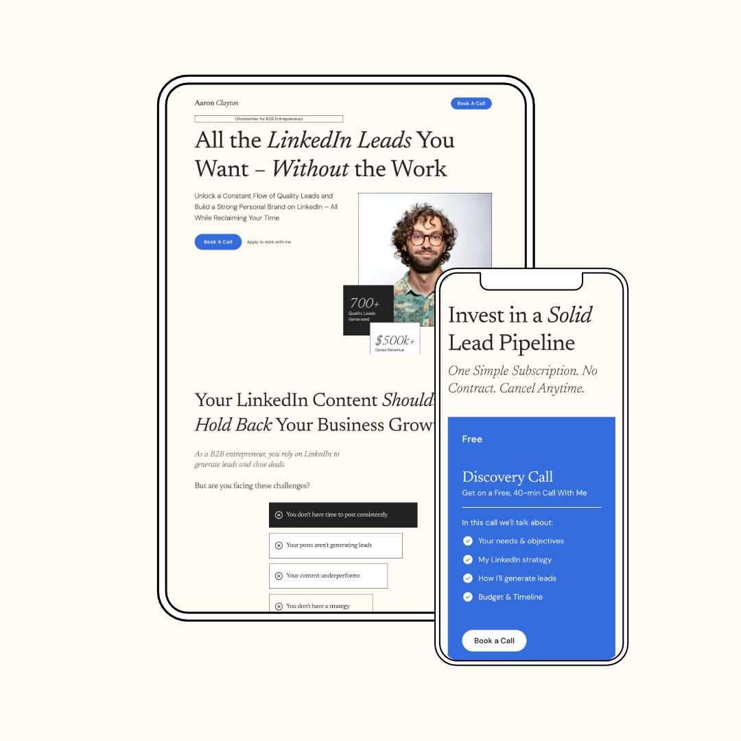 Designed to Impress, built to convert, Aaron is your ultimate weapon for generating leads, booking calls, closing deals, and ultimately scaling your solopreneur business.